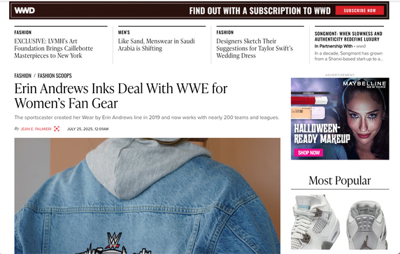 Erin Andrews Inks Deal With WWE For Women's Fan Gear